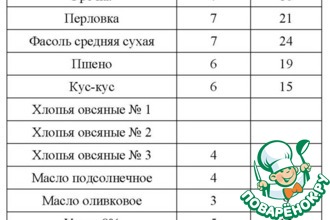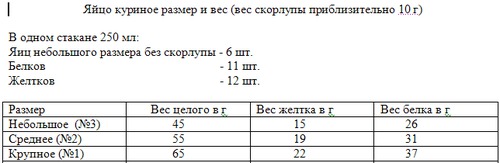 1. Таблица мер и веса наиболее часто используемых продуктов для выпечки