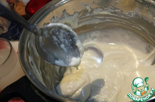 И оно прекрасно соскользнет на сковороду (у меня обратно в кастрюлю, так как двумя руками сложно было произвести съемку этого процесса именно на сковороду, хотя я честно пыталась)