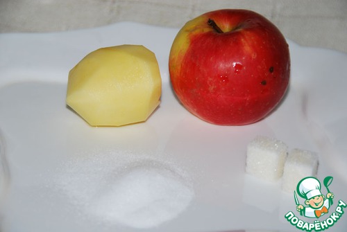 Во вторых положить туда яблоко, очищенный картофель, кусочки сахара или соль.