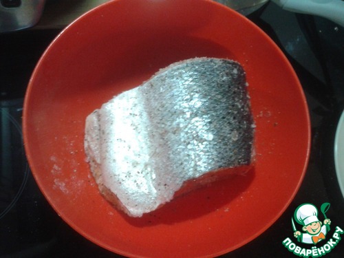 Второй кусок кладем в миску, сдвух сторон обильно посыпаем крупной солью, немного перчим. Закрываем и в холодильник. На третий день чудо-рыба засолена! Такого нежного вкуса вы не найдете ни в одной вакуумной упаковке в магазине!!!