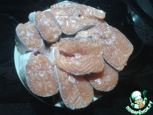 Оставшуюся часть режем на стейки. Можно сразу приготовить или заморозить.