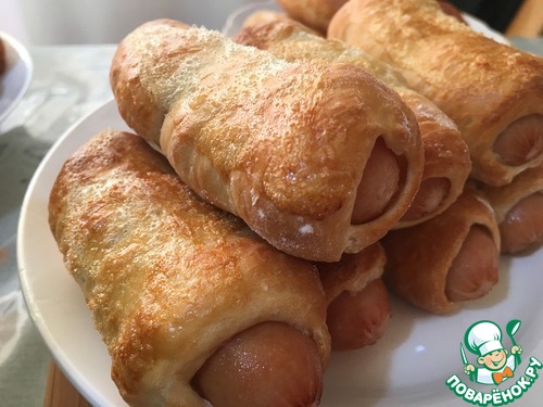 Я смазываю взбитым белком с добавлением молока (1 белок + столовая ложка молока). Смазываю не один раз, а два-три. Получается очень красиво. Я приложу фото своих сосисок в тесте и пирожков.