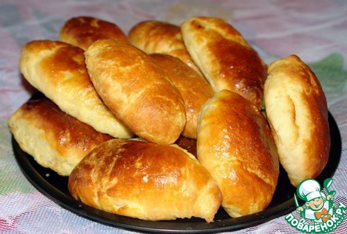 Сразу после выпечки смазать жидким крахмальным кисельком. Для глянцевой корочки.