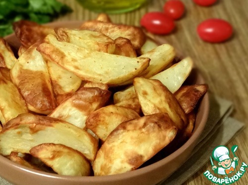 Моете картофель, почистить, потом порезать по вкусу, я люблю крупными ломтиками, отправить в рукав для запекания, добавить туда соль, специи по вкусу, чеснок, зелень, завязать рукав. Уложить его на противень или в форму, проткнуть в нескольких местах зубочисткой. Запекать мин 40 -50 в зависимости от размера кусочков при 180 градусах, мин за 10 до окончания приготовления пакет разрезать сверху, чтоб корочка была более яркая.