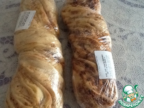 Спустя 20 минут сворачиваем тесто в шар, после чего укладываем на брожение на несколько часов. Через полчаса, а потом через час тесто обминаем, растягиваем в пласт и складываем тесто втрое, а потом еще раз втрое. Тесто должно вырасти до максимума, а вырастит оно раз в 5 больше, чем было. Далее разделяем тесто на две части, и придаем им прямоугольные формы. Далее выкатываем тесто и начинаем скручивать в жгуты, но не туго. Таким образом, получается витой хлеб.