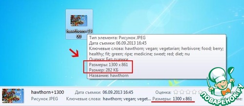 Узнать ширину и высоту фотографии можно несколькими способами. Первый – просто навести мышью на нужный файл и немного подождать. В таком состоянии перед вами появится всплывающее окно, которое содержит всю необходимую информацию.