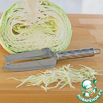 Нелли,спасибо огромное за идею!Купила такой нож, цена смешная - 55 руб. Повозиться пришлось,конечно, но капуста получилась именно такая, о какой мечтала; салат нежный, сочный и очень вкусный!Спасибо еще раз!