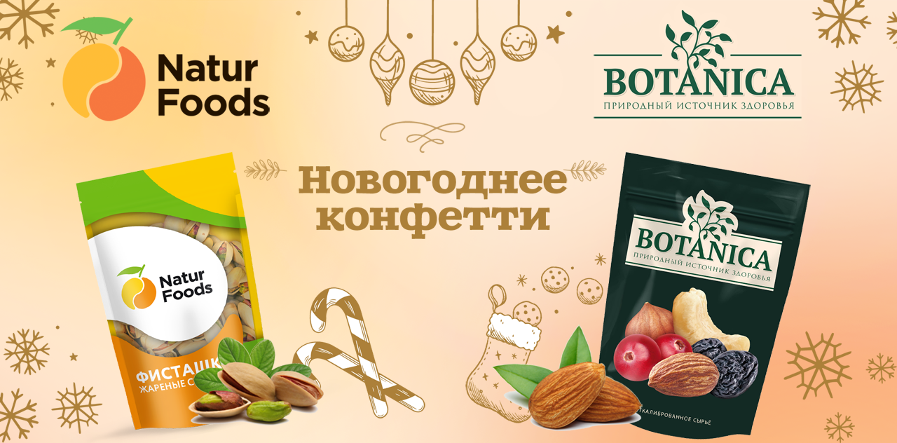 Продукция ТМ Botanica разнообразит новогоднее меню и украсит праздничные блюда, а также сделает застолье полезным для здоровья, ведь в орехах и сухофруктах содержится множество витаминов и микроэлементов, которые благотворно влияют на организм. Богатый ассортимент - грецкий орех и кешью, фисташки и фундук, чернослив и курага, по отдельности и в смесях - поможет удивить гостей и домочадцев необычными сочетаниями в этот волшебный вечер.
