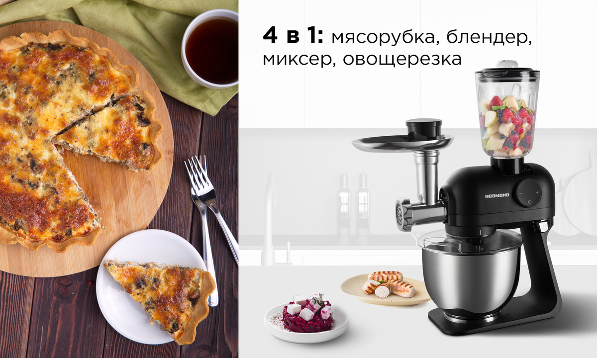 Без труда приготовить тающее во рту тесто и нежную начинку вам поможет кухонная машина REDMOND RKM-4021 с широким набором сменных насадок, 7 скоростными режимами и сенсорным управлением.