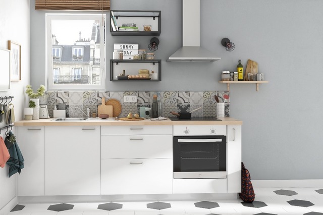 Специалисты советуют использовать колонну для встраиваемой техники, куда будут подведены соответствующие розетки. Кроме того, в Леруа Мерлен предлагают переместить духовой шкаф на уровень столешницы. Так вы сможете защитить руки от ожогов. Да и визуально решение будет выглядеть более эстетично, чем стандартное оформление кухни.