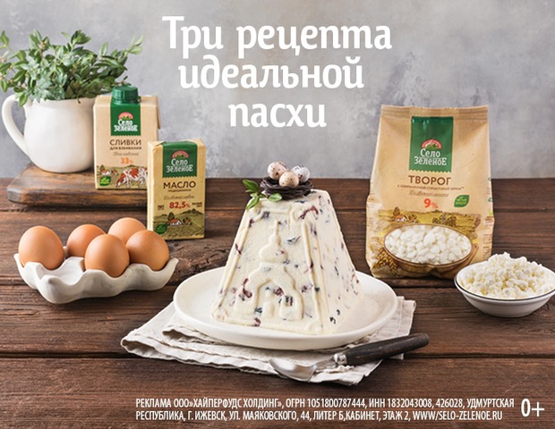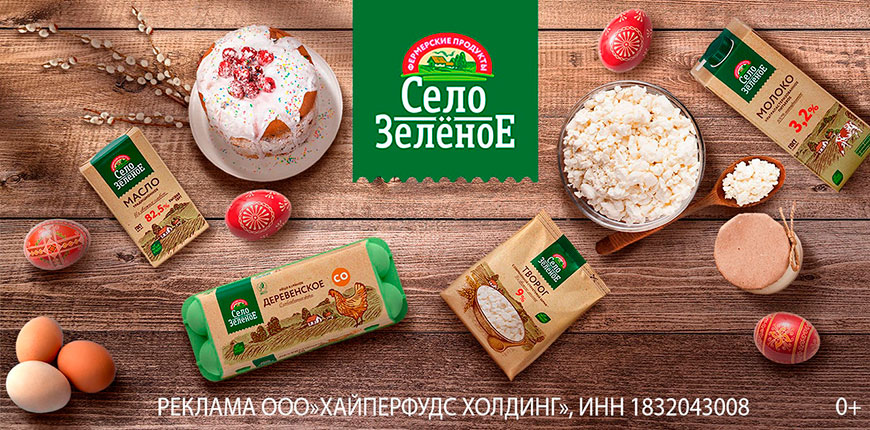 Попробовав однажды качественные фермерские продукты бренда «Село Зелёное», вы будете легко выделять их из ассортимента других товаров на полках в магазине. С праздником светлой Пасхи и приятного аппетита!