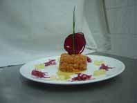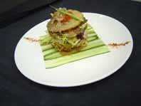 - Теплый ролл с тунцом и манго, подается с легким овощным салатом, заправленным ореховым соусом