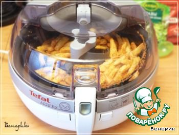 Здесь же, не в целях рекламы, а в целях поделиться с Вами новыми веяниями на нашей кухне, хочу рассказать о моём подарке, фритюрнице «Tefal», который я получила буквально на днях, и уже успела протестировать. Ну кто из нас не любит такую вкусную, и такую НЕ полезную картошку фри, обжаренную в огромном количестве масла. Теперь она стала ПОЛЕЗНОЙ, благодаря новой разработке компанией « Tefal»!!! В этой фритюрнице можно киллограм картошки пожарить всего лишь на одной ложке масла! Корочка картофеля получается хрустящая, аппетитная, внутри сочная и мягкая. Теперь я буду чаще баловать своих мужичков такой ПРАВИЛЬНО приготовленной, вкусной, и уже полезной, картошкой фри.