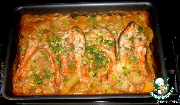 • Запекают сырую или предварительно обжаренную рыбу. При запекании рыбы в духовке посуда должна быть заполнена до краев; иначе влага быстро испарится, и блюдо будет невкусным.