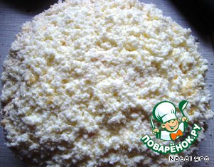 10. Следующий слой – тертый сыр. Я предпочитаю сыр твердых сортов («Голландский», «Костромской», «Пошехонский» и т. д.). Промазываем и этот слой соусом.