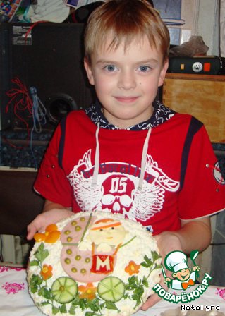 Теперь займемся украшением. Я решила выделить этот салат на столе, чтобы он привлек внимание детей.