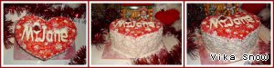 10. Украшаем торт сверху таким рисунком, каким захочется. Этот торт я в знак благодарности за преподнесённую идею посвятила нашему дружному форуму, изобразив его логотип. А тот, что дарила вечером 1 января, - украсила сердечками и снежинками.