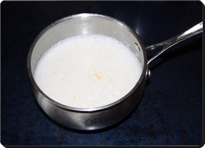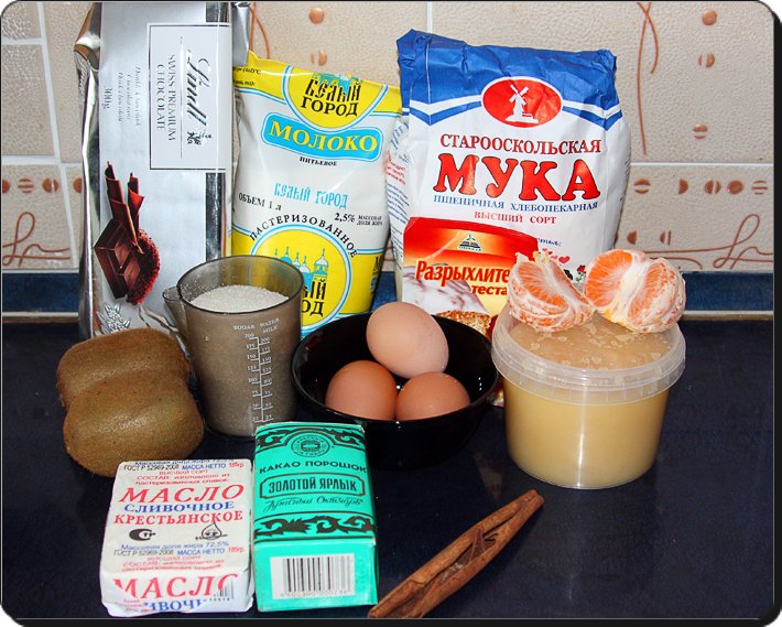 Миксером сбиваем вместе молоко, топленое масло и яйцо,2 белка, мандариновые дольки (без шкурки). Постепенно добавляем мед. Продолжаем взбивать до однородности и легкой пышности.