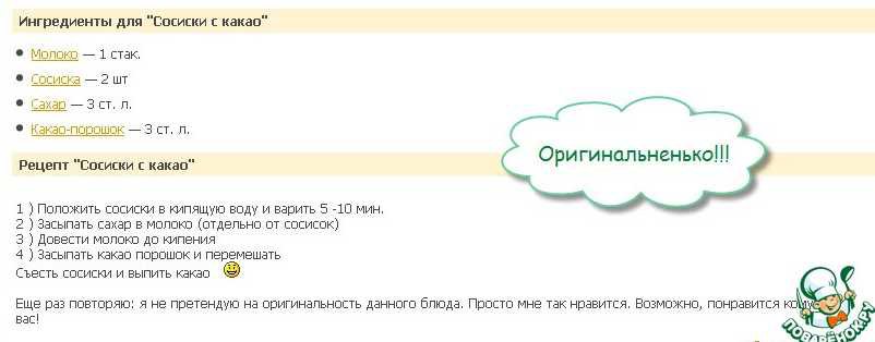 Ирочка, подборка улетная! Съесть сосиски, выпить какао, умереть, не встать