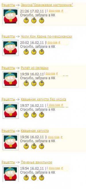 Одним из отличных способов быстрого достижения желаемого уровня является комментирование всего и вся. Раньше это было просто – парочка смайликов решала все дело. После того, как было введено минимальное количество слов в комментарии (если кто не знает – 3 штуки), народ растерялся, но ненадолго. В принципе, не надо даже набивать смайлы, достаточно просто скопировать в буфер обмена любую фразу, удовлетворяющую условиям по количеству слов, и шлепать ее в комментарии ко все рецептам подряд. Предлагаю Вашему вниманию лучшую, проверенную жизнью и активными комментаторами, подборку штампов-заготовок, годную практически на все случаи жизни (ну, то есть рецепты).