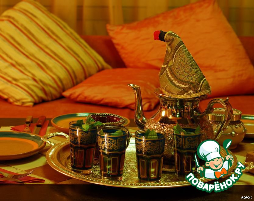 1 ст.л. зеленого чая; 5 веточек свежей мяты; 14 кусочков сахара (лучше тростникового – вкуснее); веточка вербены.