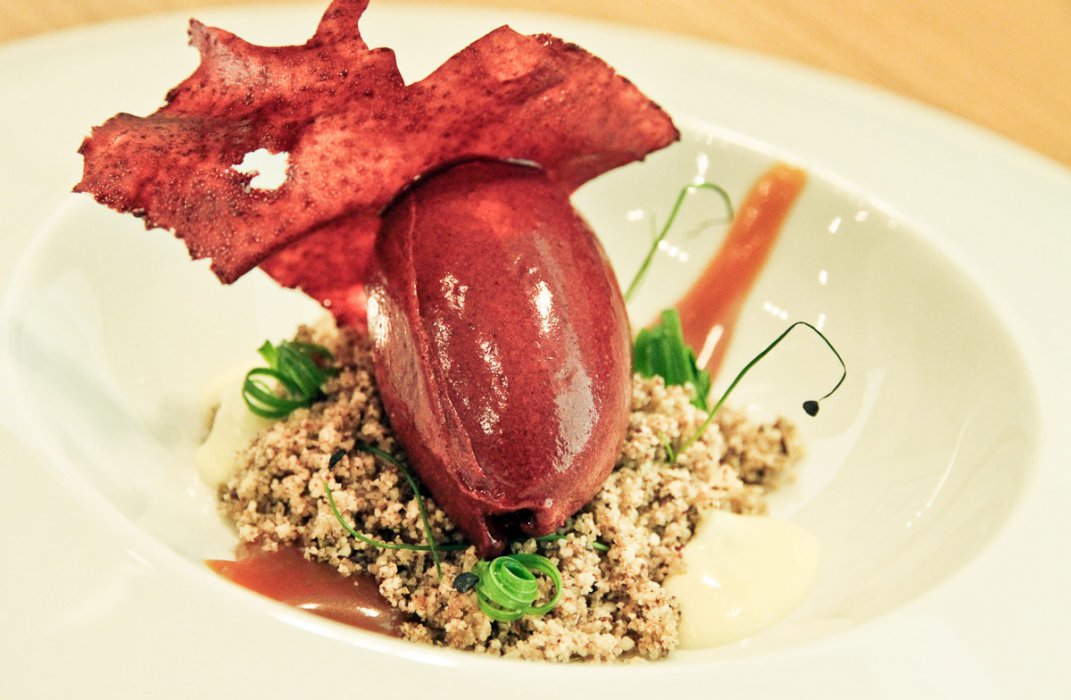 Не смотря на то, чтоон открыто заявляет о своем страстном увлечении русской кухней, Кетглас подчеркивает, что такая еда может быть чуточку тяжелой. Для того, чтобы создать блюдо, которое было бы «наименее калорийным, но в то же время с насыщенным букетом вкусов», он обращается к воспоминаниям своего детства.Там он черпает вдохновение, чтобы воссоздать традиционные рецепты блюд с легким оттенком. «Вы можете найти для себя приятные моменты в еде и наполнить свой внутренний мир разными вкусовыми впечатлениями», - объясняет он. Кетглас берет свеклу (один из самых распространенных ингредиентов русской кухни) и создает самую изысканную версию русского борща, видоизменяет салат оливье, добавляя в него несколько капель водки и желеобразный овощной сок.