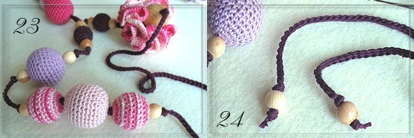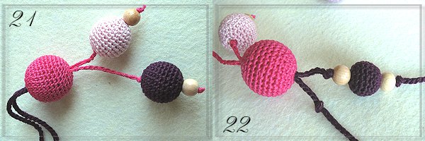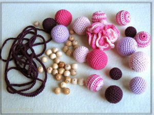 Расход примерно – 1 моток ниток на бусину 25 мм или из 2 моточков - 3 по 20 мм, или 2 бусины 14 мм из 1 мотка (тут может чуть не хватить, смотря какая плотность вязания). На шнур уходит 2 полный мотка. Но все равно мне приходится докупать нитки пару раз - придумываются бусики в процессе.