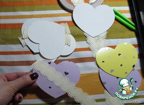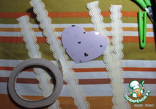 Сделали кружевные ленты из бумаги, наклеили скотч