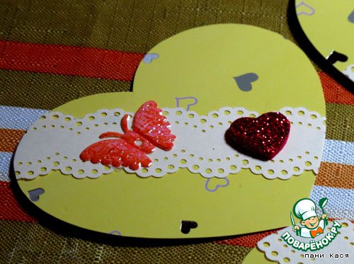 Шаблон нарисовала и распечатала на принтере, можно обводить сердечко - открыточку старую например.