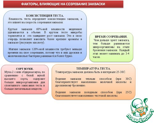 Факторы, влияющие на созревание закваски, я для наглядности приведу в виде рисунка: