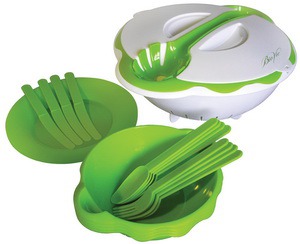 Открыт для всех кухонь мира! Независимо от того, что вы решили приготовить – изысканную итальянскую пасту или родные макароны по-флотски, вы можете воспользоваться нашим универсальным набором для пасты и салатов. В нем есть все что нужно для быстроты и удобства – большая чаша, дуршлаг, специальная ложка для спагетти, 4 маленькие чаши, 4 маленькие ложки, 4 маленькие ножа, 4 маленькие вилки, 1 крышка с выемкой для ложки. Удобный и функциональный набор не займет много места, поэтому он идеален и для дома, и для дачи.
