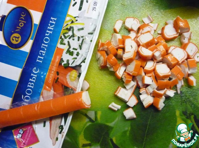 По поводу палочек и крабового мяса : сегодня в большом супермаркете специально посмотрела стоимость натуральных крабов.Самая дешевая цена начиналась от 690 р. за 200 гр.(4 тонких половинок клешни в коробочке)Понятно,что из этого не делают. Треска около 200 р. за кг.,минтай везде по-разному 90-130 р. А пачка палочек 200-250 гр. стоит 50-70 р. А есть и по 35. И Вы действительно думаете,что их лепят из филе белых рыб?! Хорошо еще,что не из осетров!!!