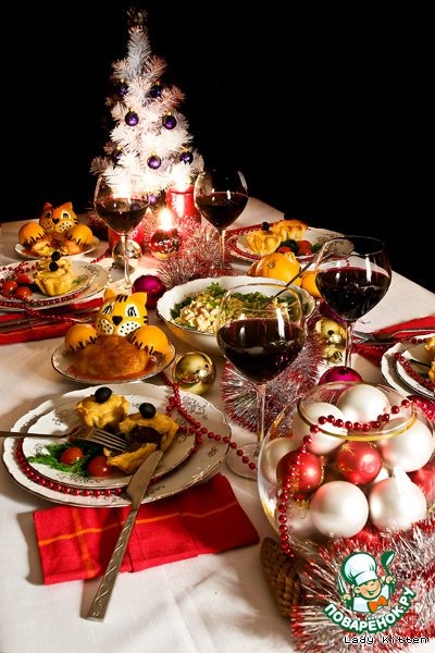 Не забудьте про закуски. Например, про традиционные, такие как холодец, заливное (конечно же, с хреном))), фаршированные яйца, помидорки или шляпки шампиньонов. С нетрадиционными закусками обратите внимание на празднично и оригинально приготовленные и украшенные в виде рулетиков, фигурок животных, растений, предметов. Такие закуски всегда будут придавать новогоднему столу праздничное настроение. Теперь поговорим про то, какие стоит приготовить на новый год…