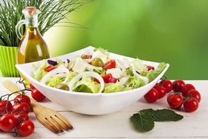 Салат с оливковым маслом от ITLV «Греческий». 2 болгарских перчика хорошенько моют, после чего очищают их от хвостиков и семян и нарезают крупными кубиками. 2 вымытые помидорки ошпаривают кипятком, чтобы избавиться от шкурок, и тоже нарезают кубиками. Далее следует порубить 5 – 6 веточек петрушки, мелко нашинковать крупную луковицу и нарезать полосками 5 – 6 листьев салата. 100 г классических маслин без косточки от компании ITLV разрезают на две половинки, а 400 г сыра фета режут на небольшие квадратики. Все компоненты тщательно перемешивают, заправляют оливковым маслом Extra Virgen от ITLV и посыпают различными приправами.