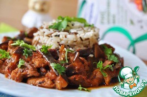 Осенние деньки – отличный повод приготовить мясо с сезонными овощами! Например, с баклажанами. Удивительно сочное мясо с баклажанами и гарниром из смеси дикого и пропаренного риса придется по вкусу каждому, особенно тем, кто следит за своей фигурой. Смесь двух видов риса позволяет заметно снизить калорийность готового кушанья, а чтобы это замечательное мясное блюдо стало почти диетическим, лучше всего брать для его приготовления нежную телятину либо постную свинину.