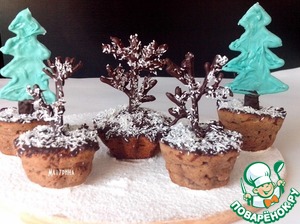 А погрузиться в самую что ни на есть сказочную атмосферу помогут изысканные кексики с воодушевляющим названием «Зимний лес», украшенные причудливыми деревцами.