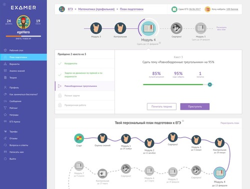 Каждую неделю на Экзамере решается более 250 000 задач, пользователи получают больше 14000 наград, 7000 пользователей ежедневно соревнуются в рейтинге и сражаются друг с другом по задачам из экзамена на ЕГЭ Арене. Интеллектуальные алгоритмы с использованием машинного обучения, рекомендуют пользователям наиболее полезные для них задания, адаптируют образовательную траекторию, многократно повышая эффективность занятий. Азарт в образовательных целях – еще одна важная деталь процесса обучения в Экзамере, поэтому появились новые форматы обучения - интересные квесты, позволяющие пройти трудные темы, награды, бонусы, рейтинги и многое другое.