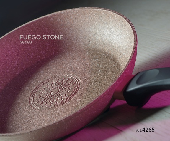 В лаборатории компании FISSMAN работают настоящие эстеты, которым не чужды представления о стиле и эргономике. Именно поэтому серия сковородок FUEGO – это микс расцветок на любой вкус. Бордовый, беж, серый, черный… – выбирайте оттенок и узор каменной крошки по настроению и готовьте с удовольствием!