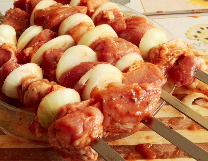 Что касается времени маринования, то куриное мясо обычно маринуется около двух часов (при этом для шашлыка лучше брать бедрышки, так как грудки могут оказаться жестковатыми), индейку и свинину маринуют на протяжении четырех-пяти часов, баранине будет достаточно трех-четырех часов, а говядине может понадобиться от трех до восьми часов.