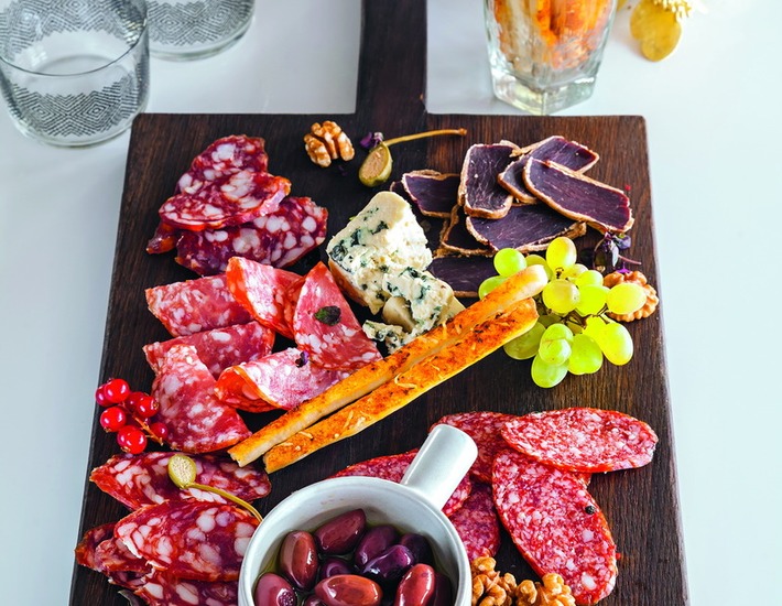Решение, на какие блюда выкладывать колбасные и мясные нарезки, принимаете вы, исходя из общего стиля сервировки и вашей креативности – строгих правил здесь нет. Блюдо может быть и круглым или квадратным, керамическим или фарфоровым, или даже деревянным. Кстати, о дереве: особую аутентичность столу придадут мясные или колбасные нарезки, поданные на специальной деревянной доске тёмных оттенков. Такие доски делаются из ценных пород дерева – оливы, вишни, дуба и т.п.