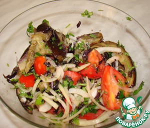 А к мясу можно смело подавать замечательный мужской салат, приготовленный из печеных баклажанов, помидор и маринованного лука. Его пикантный и насыщенный вкус порадует всех без исключения представителей сильного пола, ведь такой салатик идеально подойдет к любым мясным кушаньям!