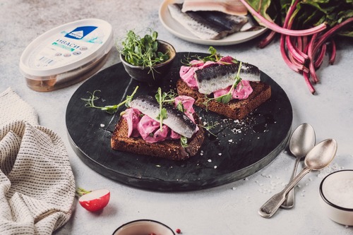 Бутерброды с сельдью по-датски. Эти бутерброды хороши тем, что они очень быстро готовятся невероятно вкусными и своеобразными – ломтики яркой свеклы придают им по-настоящему праздничный вид!