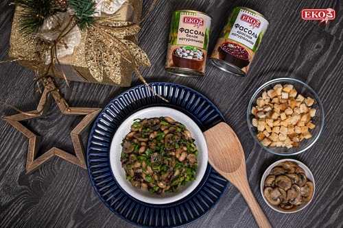 Ничуть не хуже получается и салат с фасолью и жареными грибами – великолепный микс из белой и красной фасоли от ЕКО откроет перед вами новые грани вкуса!