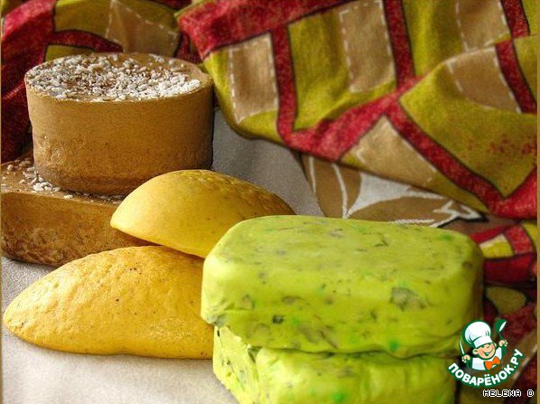 Из этого количества мыльной основы я сделала 3 вида мыла. Для этого отливала порциями основу в другую миску, добавляла эфирные масла (ЭМ), добавки и красители. При этом оставшуюся часть так и держала на водяной бане при выключенной плите, чтобы масса не загустела. После разлива мыла в формы убрала его на ночь в холодильник, утром вытащила из формы и положила в сухое место для просушки (3-4 дня).