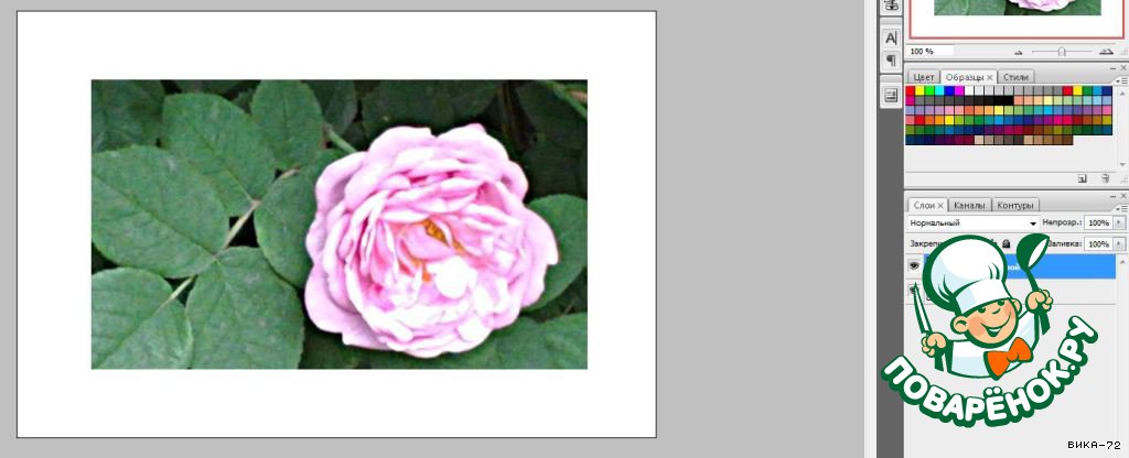 5. Перемещаем слой с картинкой перед слоем с рамкой. Для этого удерживая левой кнопкой мыши, тащим Слой 1 вниз.