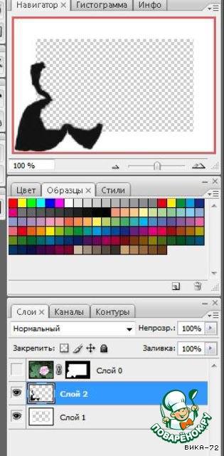 9. Для создания тени создаем новый слой (Слой 2) и располагаем его между слоем с картинкой и слоем с рамкой. Основным цветом я выбрала черный, но можно выбрать любой, который будет смотреться естественно.