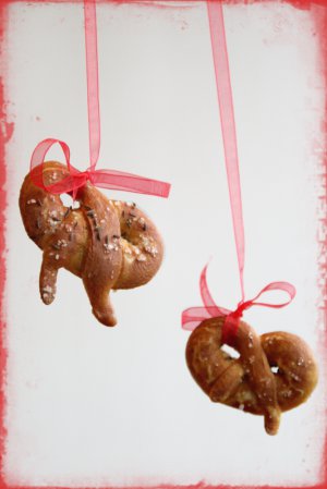 Идею я взяла из журнала Школа Гастронома (собсна, где и рецепт) - там тоже они висели на красных ленточках. Вообще это хорошая практика - пытаться повторить фото из журнала - там работают профессионалы, которые снимают зачастую несъедобные блюда (поливают глицерином, машинным маслом и т.д.), но очень привлекательные по композиции.