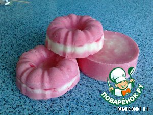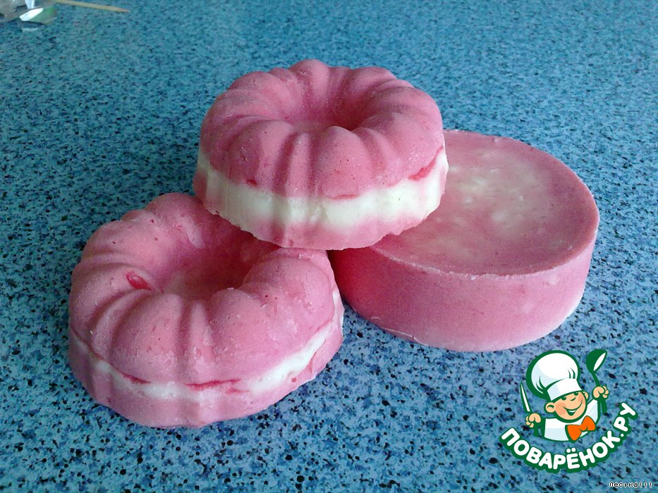 Третий опыт - розовое, на молоке, с ЭМ маслом розы и чуть-чуть апельсина. Ну пахнет розой