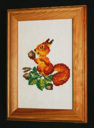 Вот ведь было время!!! Сейчас от него такого не дождешься.... Хотя, впрочем, оно и понятно - времени почти совсем нет - работа, а дома ждет с нетерпением соскучившийся сынишка, не то, что 6 лет назад - беззаботный, приболел, сидел дома на больничном и вышил мне на день рождения такую вот белочку. С тех пор сидит она у меня на полочке и радует меня