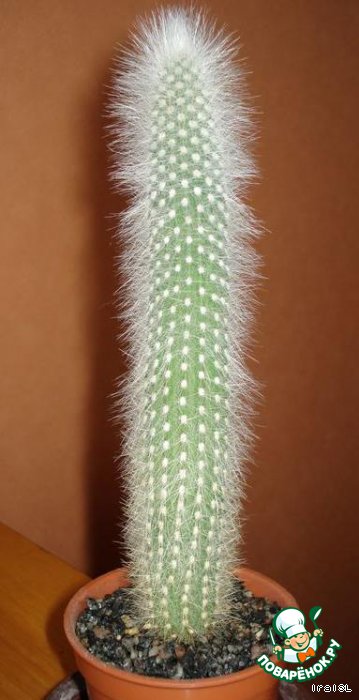 А этот кактус, как только наступают жаркие солнечные дни, сразу начинает наращивать шевелюру.